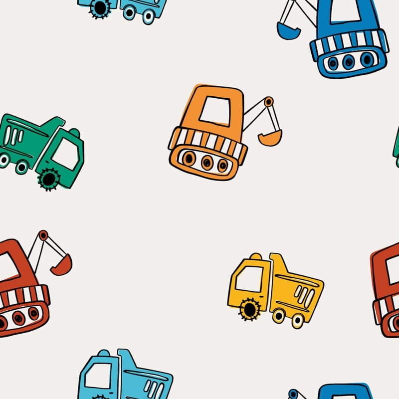 Color vehicleMooi ecru kleurig stofje met in diverse kleuren voertuigen.